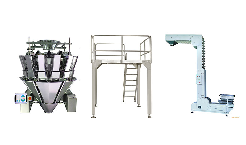 適用范圍:塊狀物料:麥片、豆腐干、糖果、紅棗、巧克力花生等。這套設(shè)備是由給袋式包裝機+提升機+工作平臺+多頭組合秤組合而成。