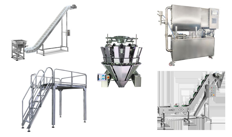 2.適用范圍:土豆牛肉、酸辣雞雜、紅燒牛腩、辣椒炒肉等帶湯汁的料理包包裝。這套設(shè)備是由給袋式包裝機(jī)+工作平臺+碗式提升機(jī)+多頭組合秤+提升機(jī)組合而成。